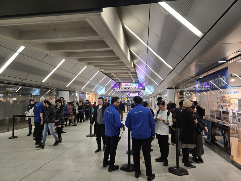 ショップ前には、なんと開店の数時間も前から行列が発生していました。肌寒いロンドンの朝にも関わらず(幸い商業施設の中だったのでまだ良かったです)、ファンたちはワクワクした表情で列に並び、開店の瞬間を心待ちにしている様子が印象的でした。