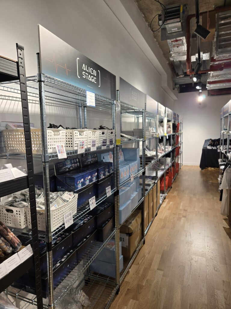 オープン直後の熱狂が落ち着き始めた11月中旬、連日多くのファンがショップを訪れ続けたことで、想像を上回るスピードで商品が動き、店内の棚は少しずつスペースが目立つように。